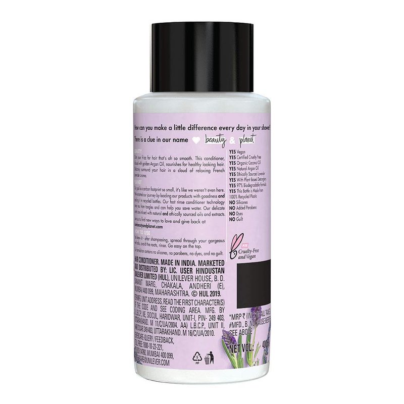 Love Beauty & Planet Argan Oil and Lavender Natural Conditioner for Dry & Frizzy hair, No Sulfates, No Paraben, 400ml