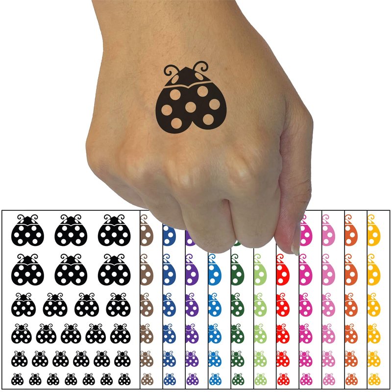 Love Bug Heart Shaped Ladybug Temporary Tattoo Water Resistant Fake Body Art Set Collection - Black (One Sheet)