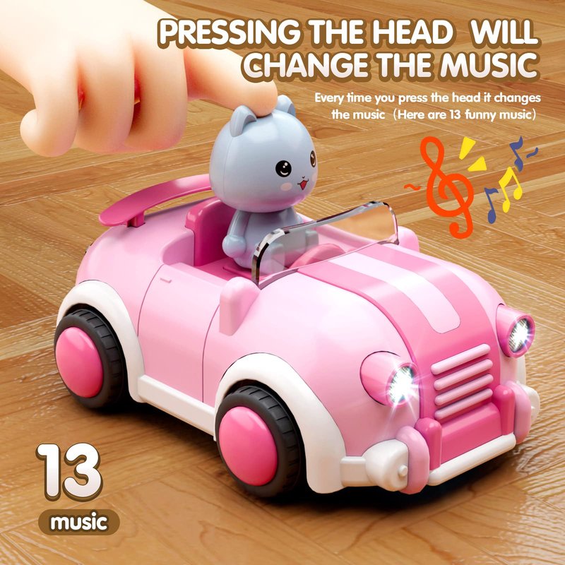 - Unique Design & Easy to use : Our Radio Controlled cartoon Car is easy to use. With the remote control kids can easily navigate the functions of the car. Easy navigation on the remote design, forward and backward buttons with easy turn functions. The cartoon car also makes 13 fun sounds, music and flashing light on the spines .