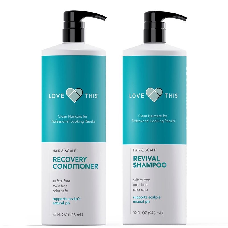Love This - biotin shampoo and conditioner Bundle. Enjoy healthy hair from roots to ends! Supporting scalp's natural pH, Love This hair growth shampoo and conditioner for women and men 32 oz bundle cleans, deeply nourishes, and hydrates your hair and scalp for smooth and lustrous salon-quality results. This argan oil shampoo and conditioner repairing combo is formulated 100% natural Argan oil, making this the perfect hair care solution for all hair types. Promote Growth, Smooth, & Strengthen. Sulfate-free, our shampoo conditioner won't strip or thin hair or dull your natural shine. For optimal results use our best shampoo and conditioner this way, first drench hair and work shampoo from roots to tips, massaging the scalp. Rinse and follow up with Love This Recovery Conditioner. Leave in for at least two minutes, then rinse. Our amazing women & mens shampoo and conditioner is naturally scented with rosemary and peppermint oils to soothe and refresh your hair and scalp as you wash