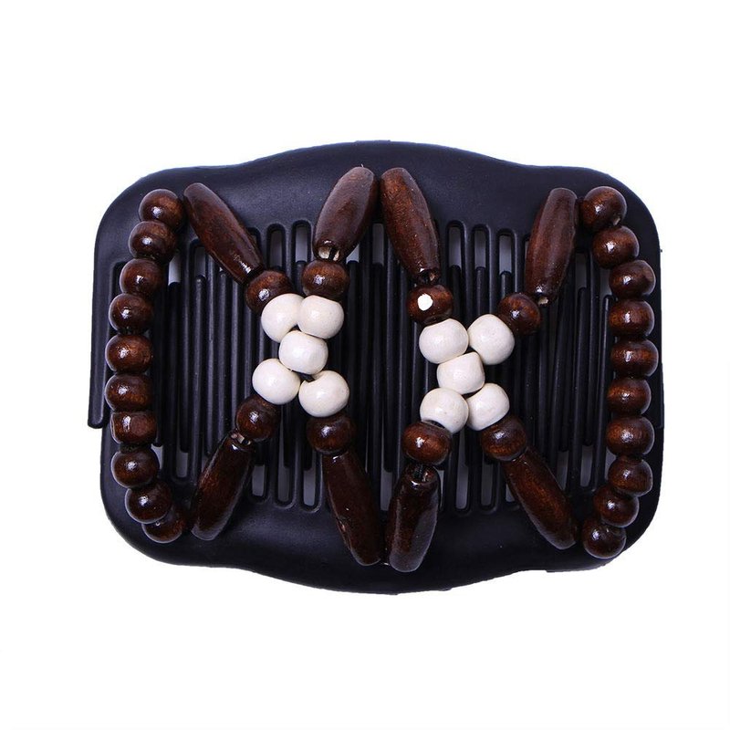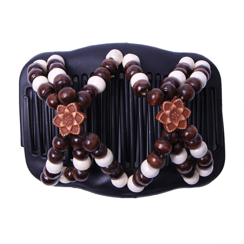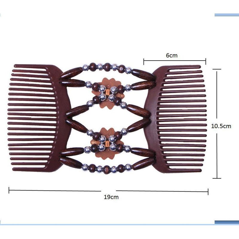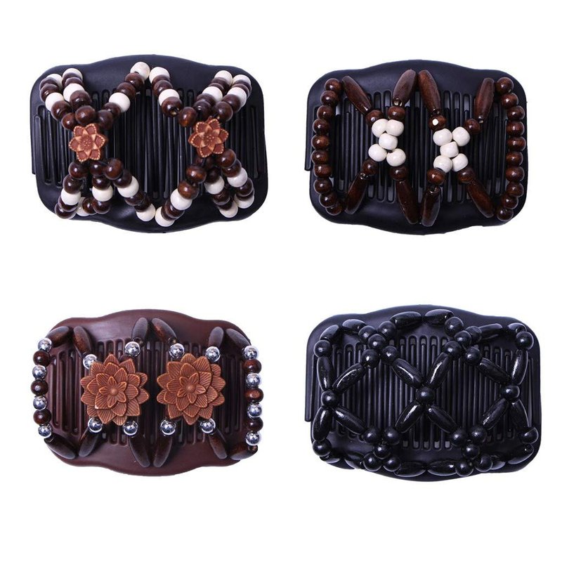 LOVEF Thick Hair Clip Magic Wood Beads Double Hair Comb Clip Stretch Combs for Hair Fashion Design Multi Butterfly Bun Maker for Popular Hairstyles Style 4pcs