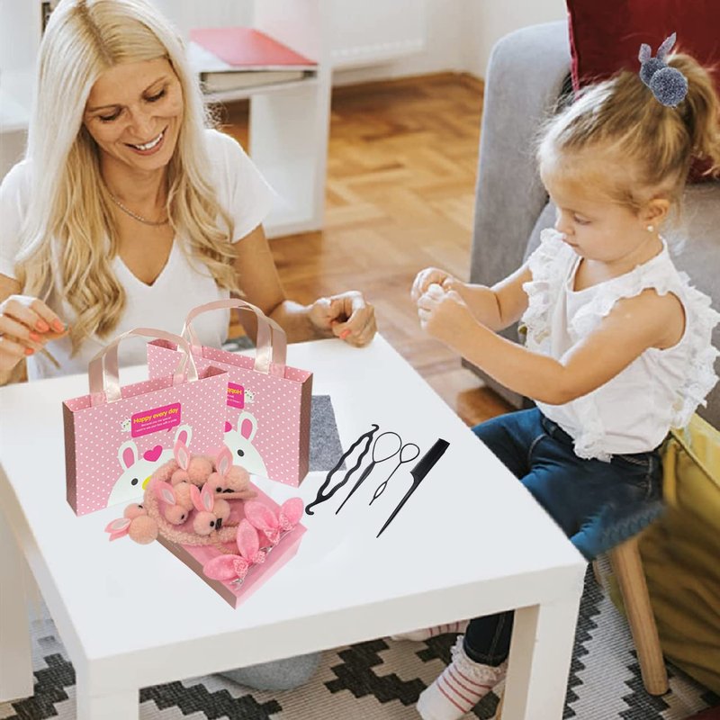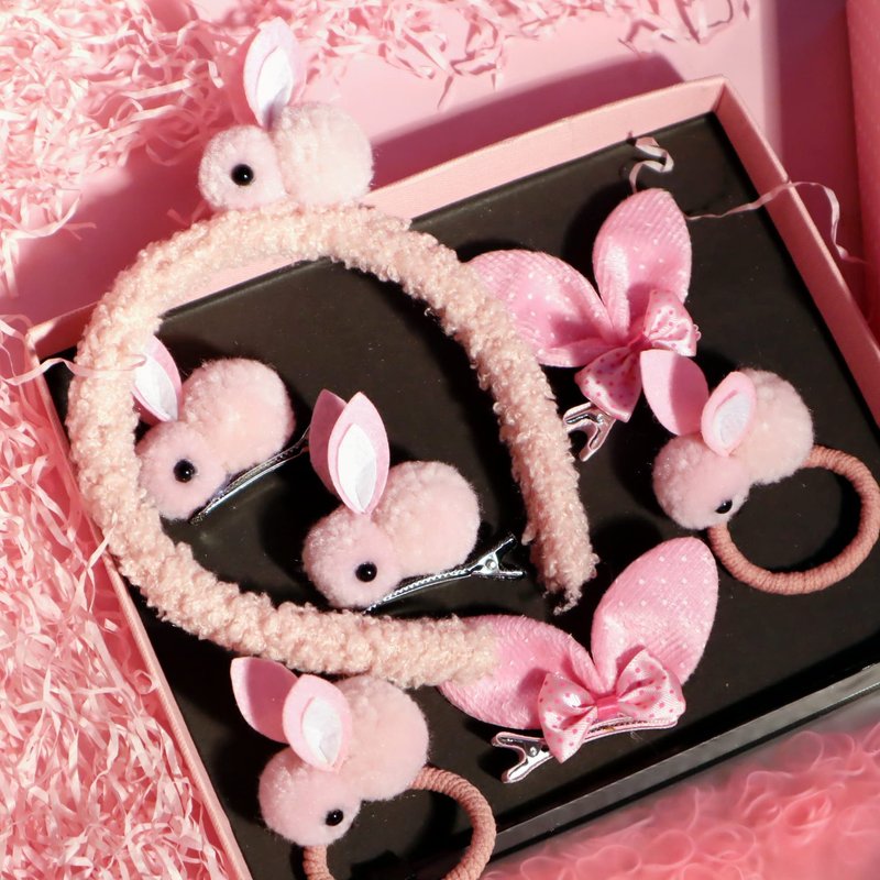 Lovely Simulation Rabbit Hair Ties, Hair Scrunchies For Girls Elastic Ponytail Holders Rubber Band For Hair, Kid Hair Clip,Headbands,Hair Accessories Set For Baby and Kids 1011PCS (Pink)