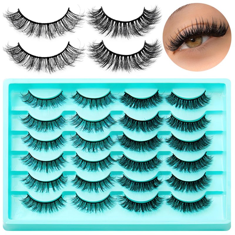Eye lashes sets pack natural look includes 12 pairs false eyelashes fluffy lashes that you can used for eye lash extension or share with your friends and families.