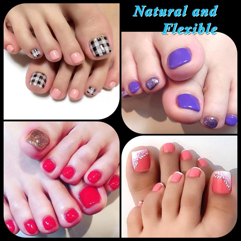 - 💅Easy Application Clear Toenails:Select the most suitable size toenails, apply the soft gel toe nail tips with nail glue, press the toe fake nails on your natural toenails and press for 30 seconds. Stick it on your toenails and you can easily apply acrylic powder,dip powder, hard gel, uv gel, gel polish, fiberglass and paste rhinestones on it. Half cover clear press on toenails have very strong adhesion, you can wear gel x toe tips to hiking, swimming, running, traveling, walking or dancing.