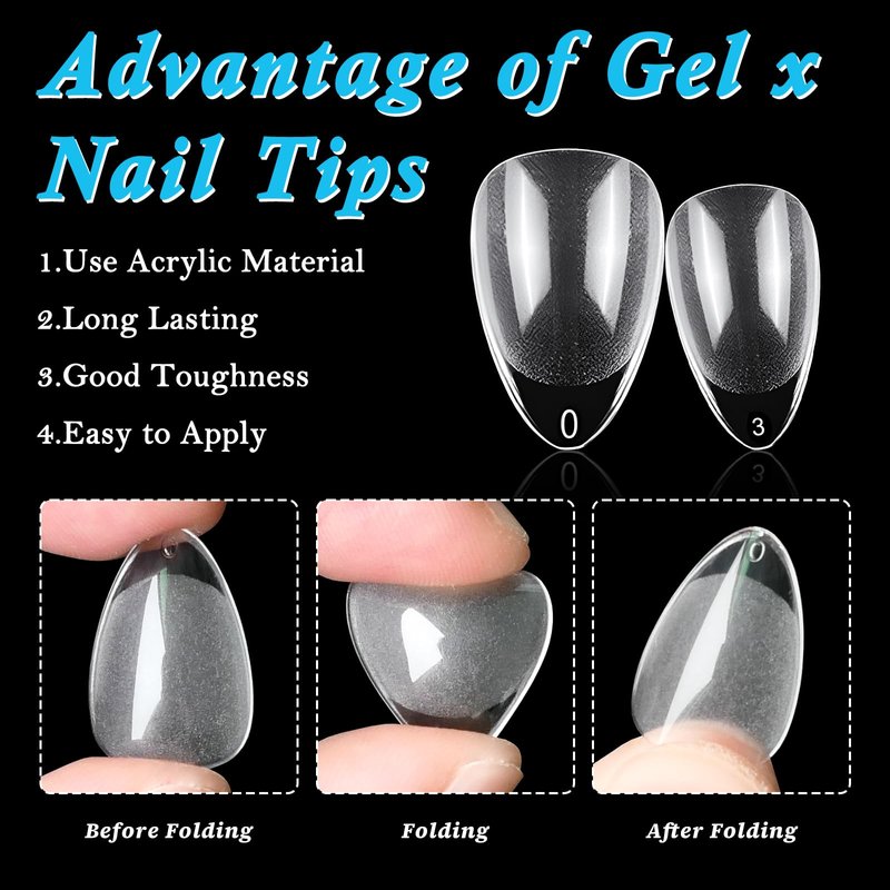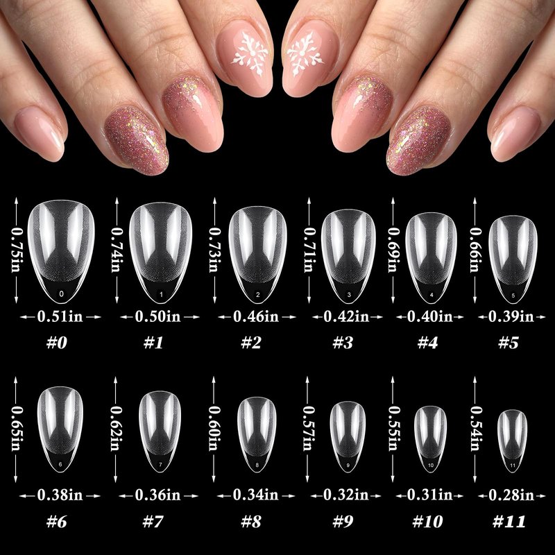 - 💅12 Sizes Clear Almond Short Nail Tips: Gel x nail kit contains 600pc real short almond gel x tips,12 different sizes with 50 nail tips of each size. 12 sizes gel x nail tips can fit for wide/small nail beds. Clear short fake nails are per-numbered at the top which is convenient for you to choose the best size nail tips you need. Clear gel x nail tips can be customized and reshape by cutting or filling down the nails with nail clipper.Enjoy fake nails fun with your friend and family!