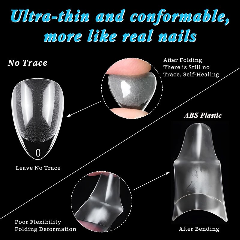 - 💅Designed Specifically For Nail Salons: Gel x Fake nails offer feature protective building gel finish,which is no different from professional salon nails.The smooth edge of clear nail tips have a more shallow curve, convenient to press on nails beds tightly, You can easily extend your nails and enjoy the fun of DIY nails. After wearing these short almond nail tips , you can do anything you want without affecting your daily life and work, Clear press on acrylic nails won't fall off easily.