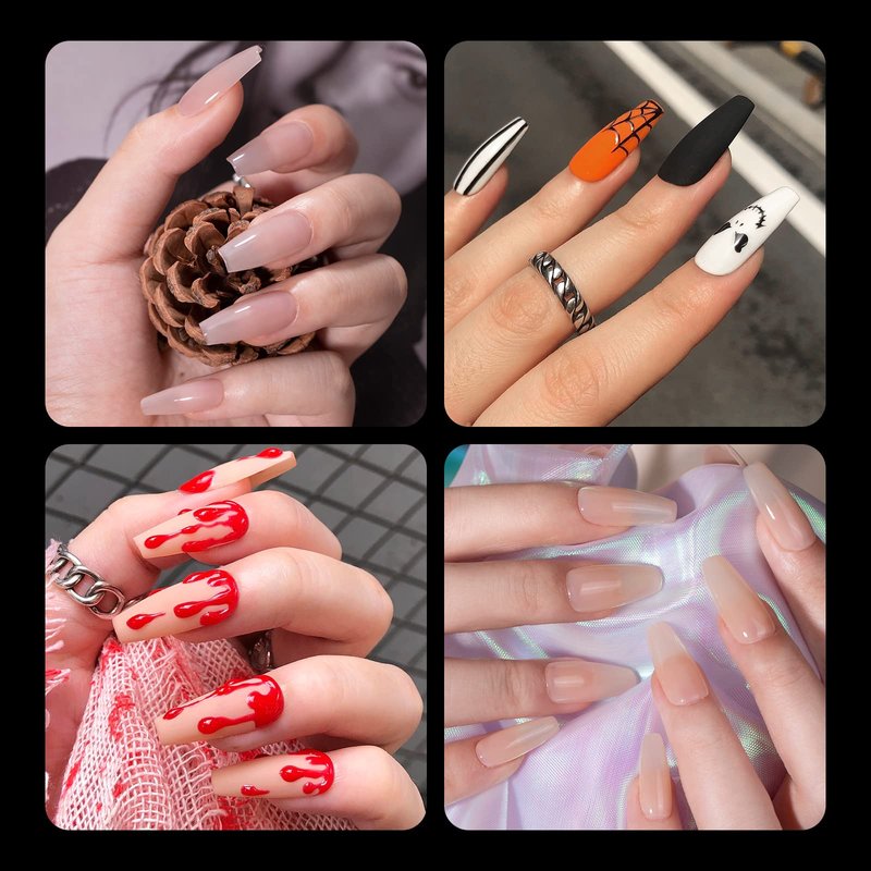 Full cover balerina acrylic gel x nails perfect for acrylic nails extension, dip powder, nail polish, professional salon and home DIY manicure, press on nails making. Easier to DIY your favorite nail art effect with coffin gel x nail tips clear acrylic nails, adding a bright color to your beauty life Full cover semi-matte coffin gel nail tips can paint red/white/black/brown/nude nail polish to diy black press on nails, brown press on nails, red press on nails and nude press on nails