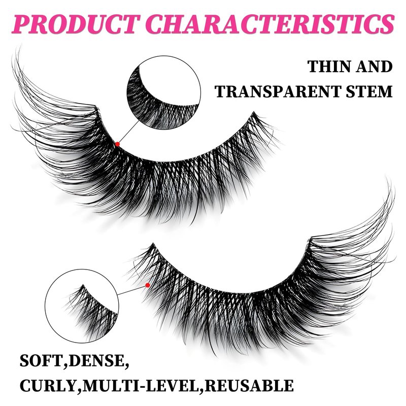 - Faux Mink Eye Lashes Pack - Comfortable cat eye lashes featured with flexible clear band and fluffy faux mink eyelashes material, handcrafted false eyelashes are soft, lightweight. Soft to touch and weightless wispy lashes give you a effortlessly natural and glamorous cat eye look. Cat eye false lashes are perfect for both for daily or dramatic eye makeup.