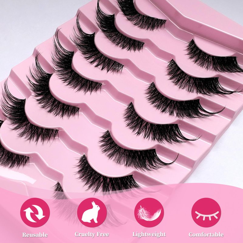 LoveOurHome 7 Pairs Fake Eyelashes Fluffy False Eyelashes Cat Eye Faux Mink Wispy Lashes Natural Look Lash Extension Eye Lashes 6-21mm 6D Volume Strips False Lashes with Tweezer for Women Teen Girls