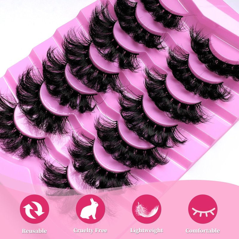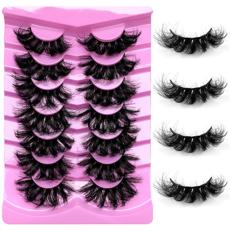 LoveOurHome 7 Pairs Fake Eyelashes Fluffy False Eyelashes Faux Mink Wispy Lashes Natural Look Lash Extension Eye Lashes 18mm 6D Volume Strips False Lashes with Tweezers for Women Teen Girls
