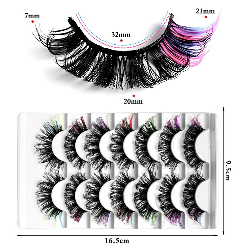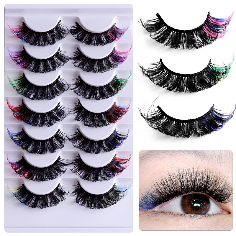 LoveOurHome 7 Pairs Fake Eyelashes Fluffy False Eyelashes Faux Mink Wispy Lashes Natural Look Lash Extension Eye Lashes 21mm 6D Volume Colorful Strips False Lashes with Tweezers for Women Teen Girls