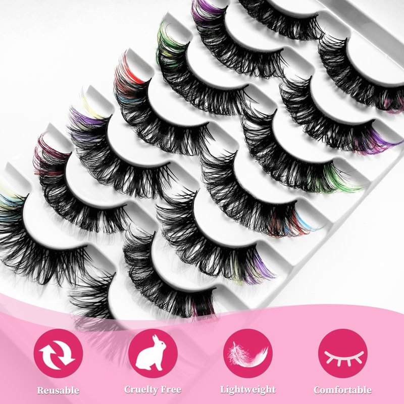 - Faux Mink Eye Lashes Pack - Comfortable colorful cat eye lashes featured with flexible clear band and fluffy faux mink eyelashes material, handcrafted false eyelashes are soft, lightweight. Soft to touch and weightless wispy lashes give you a effortlessly natural and glamorous cat eye look. Cat eye false lashes are perfect for both for daily or dramatic eye makeup.