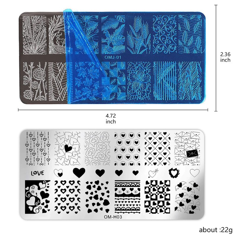 - Designer nail stamping plate set featured with various cute and trendy pattern image,there are flower, love, letters,lace, butterfly, heart, geometric, leaves print stamping plates, offer you multi choice to diy beautiful and stylish manicure without painting and drawing pattern.