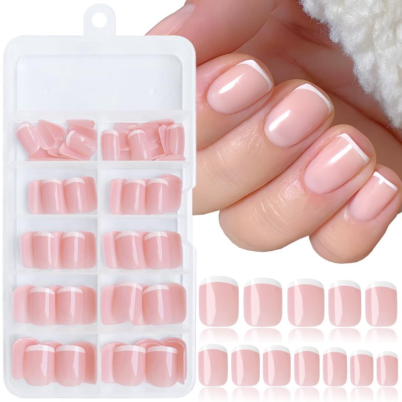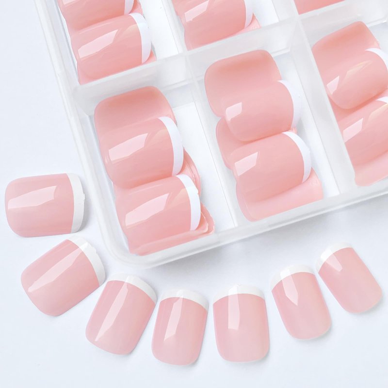 - Natural Looking Short Fake Nails: Thin white tip and sheer base creates an understated, clean french style manicure. Full cover square shape nails with short length design, make these nude french nails looks professionally done on fingernails. Nude color false nails have the similar color with our natural nail bed, look pretty natural, french white tips make the short naisl press ons more trendy and beautiful.