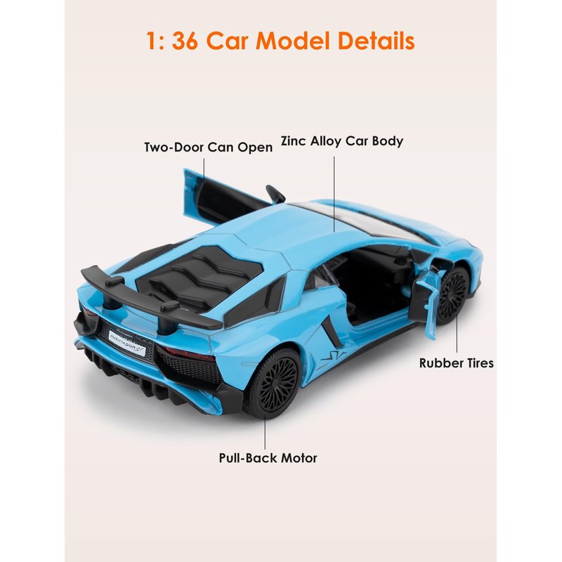 LOVEPOSELY 1:36 Scale Collectible 2015 Lambo LP750-4 SV Diecast Cars Models, Pull Back Vehicles Car Toy Birthday Gifts for Adult Kids Ages 3 + Year Old(Blue)