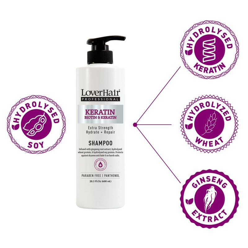 LOVERHAIR PROFESSIONAL Keratin Biotin Extra Strength Hydrate & Repair Shampoo 20.3 fl oz (600ml)