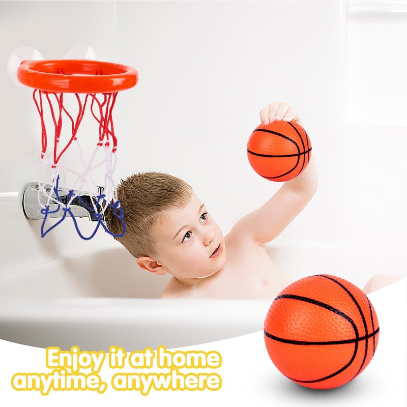 - Bathtub Basketball Hoop - Our bathtub basketball set includes 4 soft balls. The kids' bathtub basketball hoop features 2 sturdy suction cups, effortlessly attaching to any smooth surface.