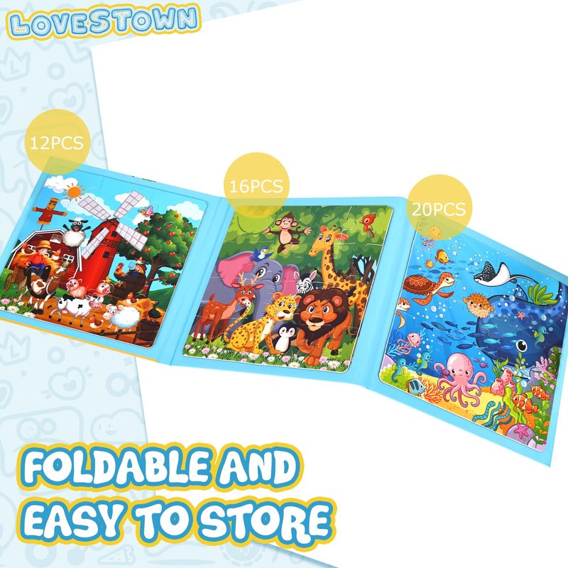 LovesTown Magnetic Puzzles for Toddlers, Travel Puzzle for Kids, Magnetic Puzzle Book for Boys and Girls, Animal Educational Learning Magnet Game for Road Trip