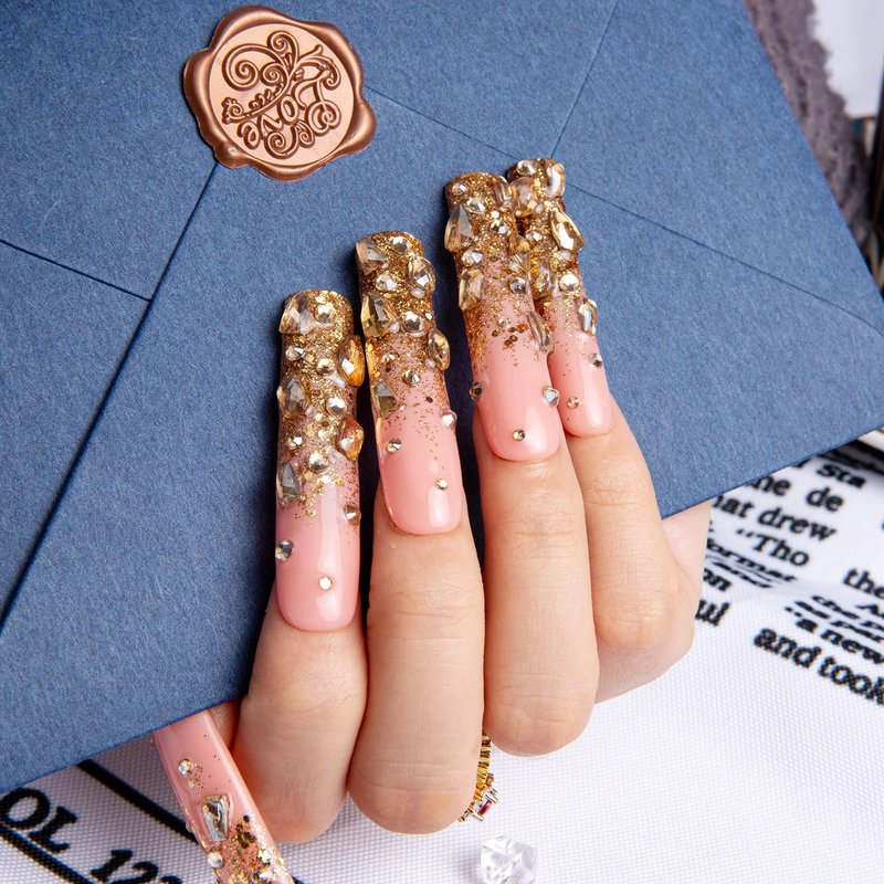 - Luxury Fake Nails:Transform your nails into a symbol of luxury with these handmade press-on nails. The intricate details and premium quality materials provide the appearance of salon-style luxury without the commitment.