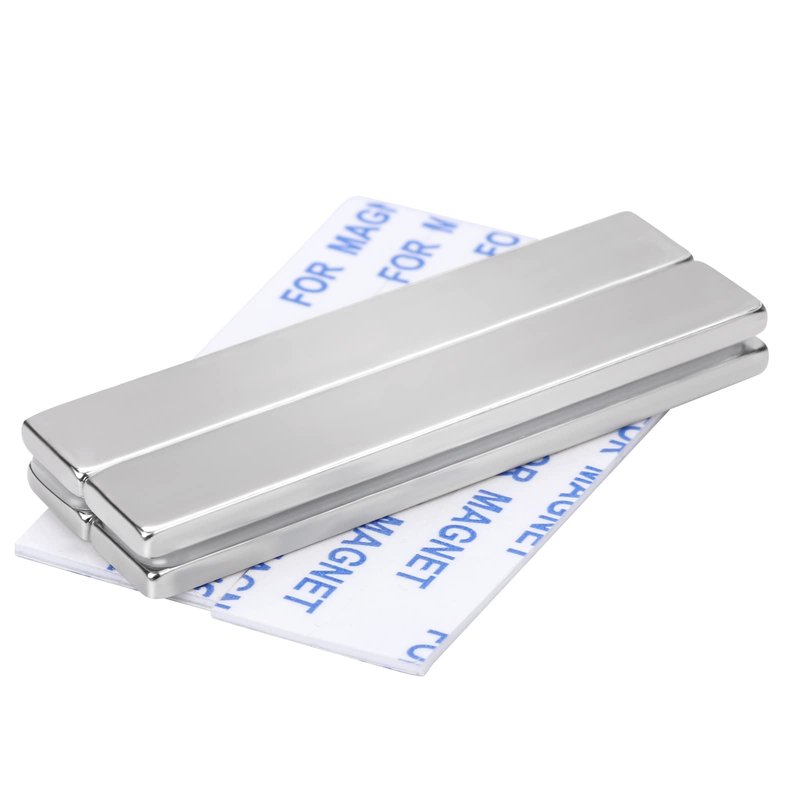 LOVIMAG Strong Neodymium Bar Magnets with Double-Sided Adhesive, Rare Earth Metal Neodymium Magnet for Fridge, Scientific, Shower Door, Office etc, 60 x 10 x 3 mm, Pack of 4