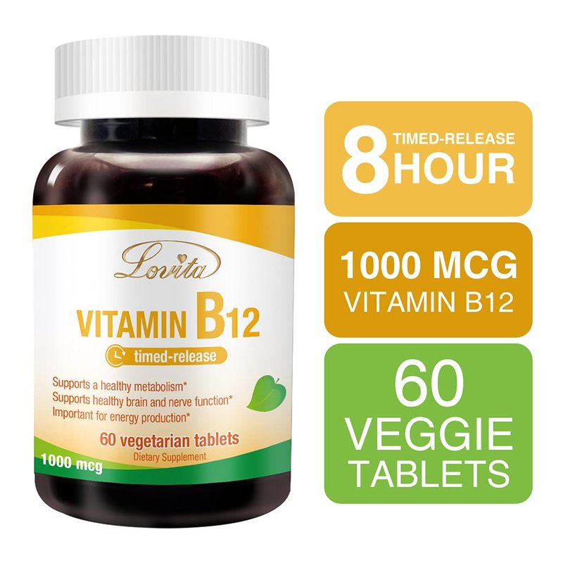 - ENERGIZING B-12 VITAMIN: Lovita Vitamin B12 is a powerful timed-release supplement featuring 1000mcg of Vitamin B-12 (Cyanocobalamin).