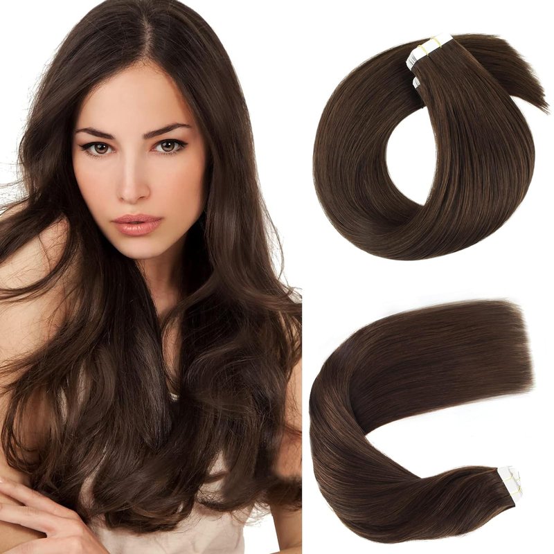 Lovrio 14" 20 Pcs 50g Tape in Hair Extensions Color Dark Brown Invisible Human Hair Silky Straight Tape ins #2