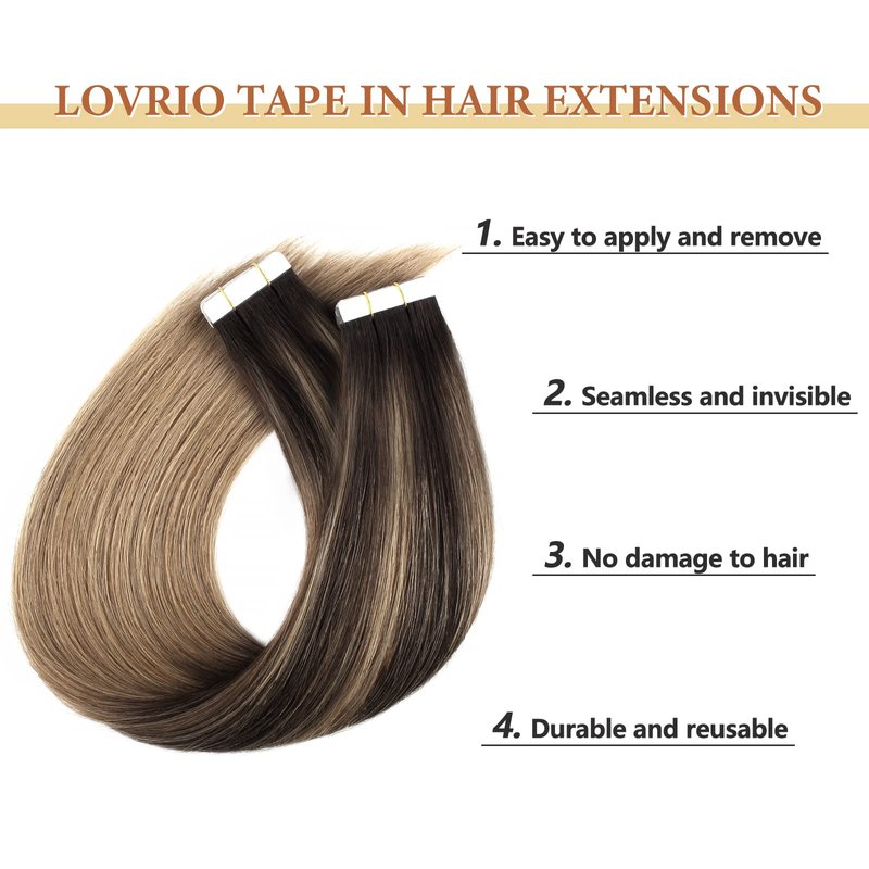 • 【High Quality Real Human Hair Extensions】lovrio's tape in hair extensions are meticulously crafted using 100% authentic virgin human hair, ensuring a luxuriously soft texture and a natural color that seamlessly blends with your own hair. The extensions are carefully designed to be thick from top to bottom, providing a voluminous and glamorous look.
