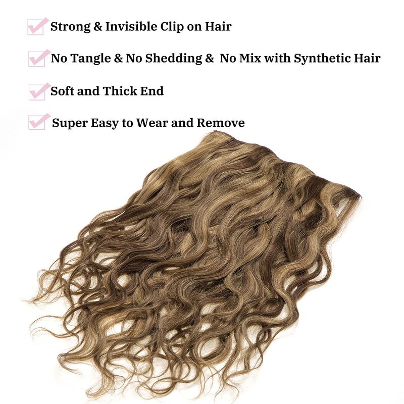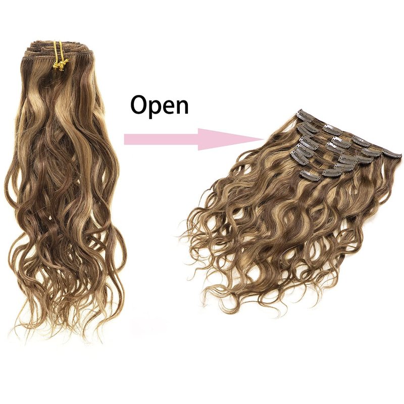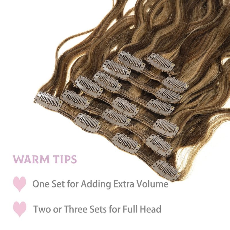 • 【Clamp tightly】:A set contains seven pieces.Total of 17 clips all use professional clips, which will never damage the hair and ensure a firm connection to your hair, at the same time, the clips are securely fastened to the hair extensions and will not fall out.
