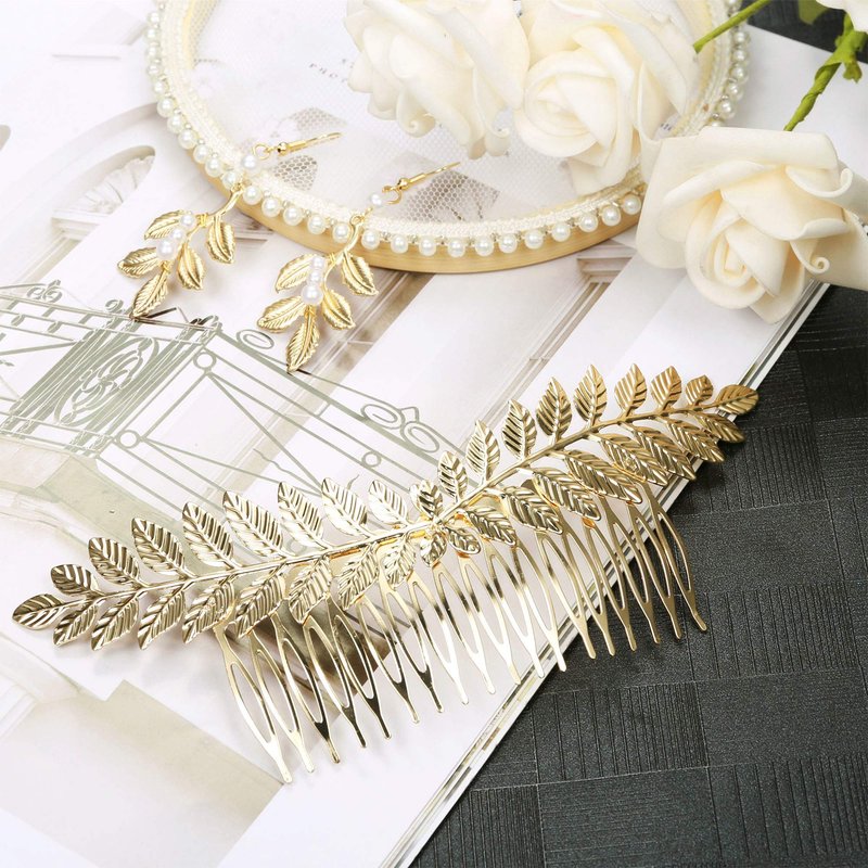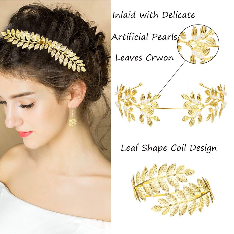 - [Unique and novel design]-these hairpieces,earring,coil bracelets are all designed with laurel leaves shape,elegant and beautiful,they are in line with the style of Greek goddess accessories and is ideal for women who like dazzling and magnificent hair accessories.Please tack action and try it!