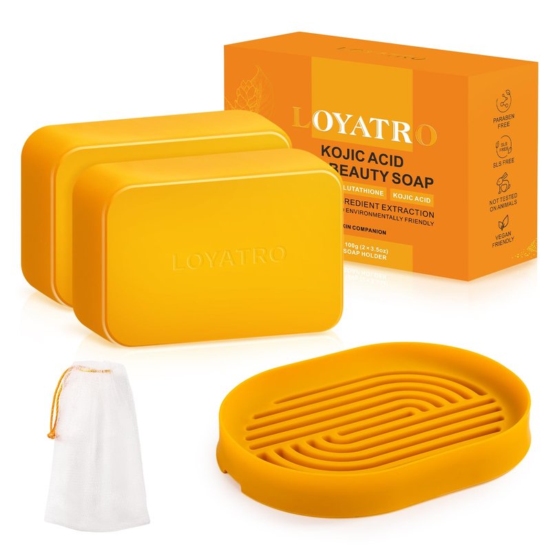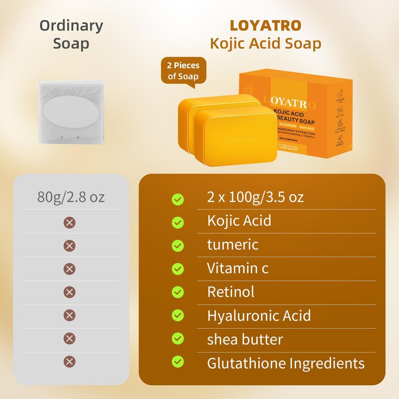 LOYATRO Turmeric Kojic Acid Dark Spot Remover Soap Bars with Vitamin C, Retinol, Collagen - Original Japanese Complex Infused with Hyaluronic Acid, Vitamin E, Shea Butter