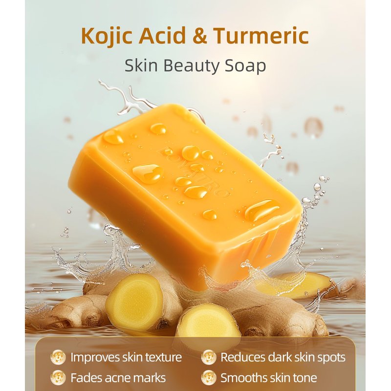 - 【Turmeric and Kojic Acid Soap for Skin】Turmeric and kojic acid have very good skin beautifying effects while cleansing the skin, they can better even out skin tone, effectively lighten freckles and improve pigmentation.