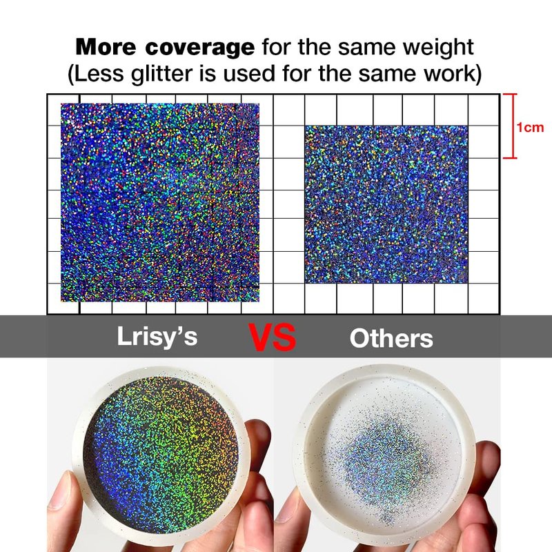 - Widely Application - Beautiful flash size: 0.2mm(0.008in) extra fine glitter are meet your different needs. Perfect for Resin Art/Slime Making/Epoxy tumblers/ Nail art/Body make up or any other DIY projects. Also very suitable for nails to build exclusive DIY. They can add more fun to your personalized authoring projects.