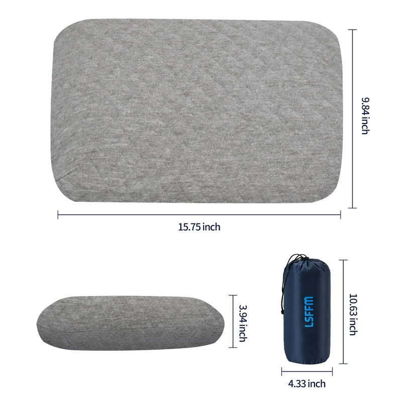 LSFFM Travel & Camping Memory Foam Pillow,Travel Essentials,Hammock Pillow with Double-Layered Pillow Cover,Easy to Clean,Compact Travel Pillow for Sleeping (Grey)