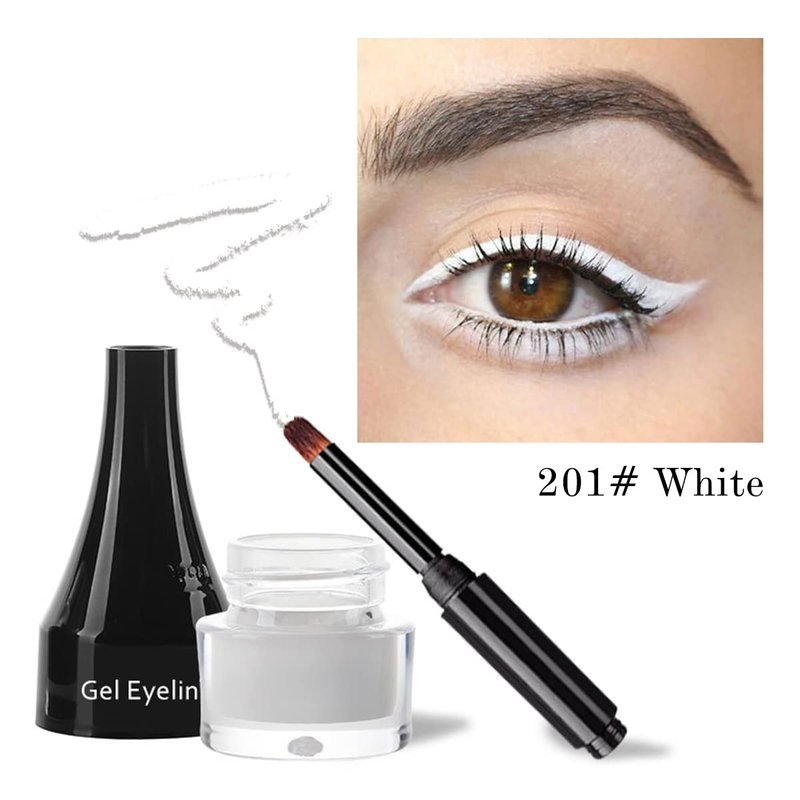 - 【SKIN-FRIENDLY TEXTURE】- This white eyeliner gel has a smooth and delicate texture, giving your skin a soft touch. Strong adhesion, no halo, thick and thin controllable silky waterproof eye-liners, easy to apply and color, natural formula does not irritate the eyes, easy to shape different and charming matte eye-liner makeup.