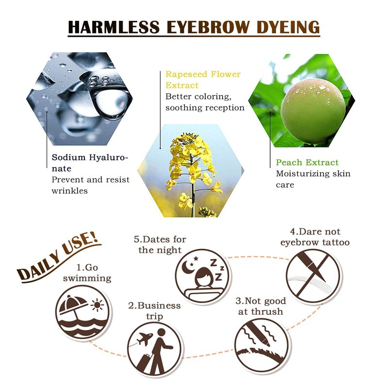 - Long-Lasting And Waterproof: Made from a high quality waterproof formula and high pigment natural materials, properly used to keep the color of eyebrows for a long time without fading, waterproof and sweat resistant.