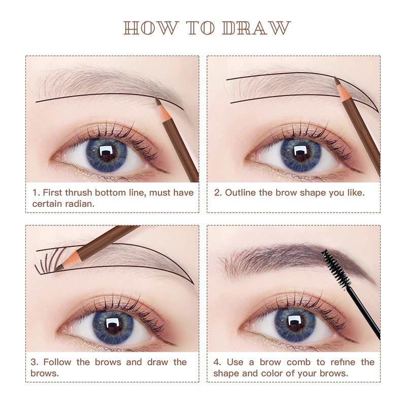 - 【Package Includes】 You will get: 6 Peel-off Eyebrow Pencil, 1 White Eyeliner Pencil, 2 Eyebrow Trimming Blade (Sharpeners), 3 Eyebrow Stencils, 1 Eyebrow Brush (Spoolie).