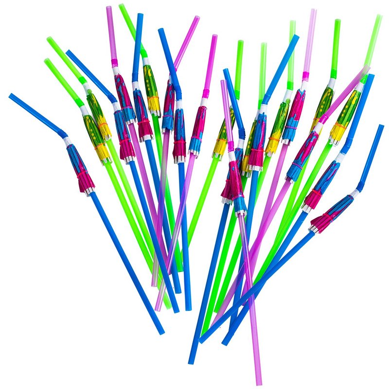- The Set Includes 12 Lei Necklaces and 24 Drinking Umbrella Straws