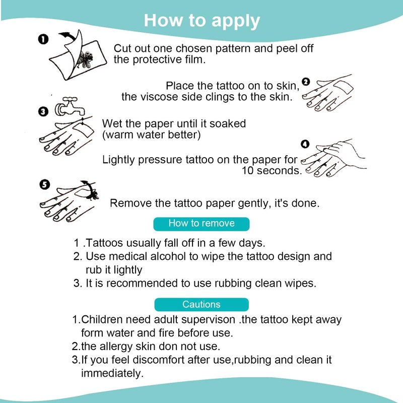 - 【Easy to Apply】Place the Hawaiian temporary tattoos on clean and dry skin, Gently wipe the tattoo with a damp tissue in 10-20 seconds, Remove the paper, Let the tattoo dry, and enjoy! It is easily removed by rubbing body oil, or olive oil.