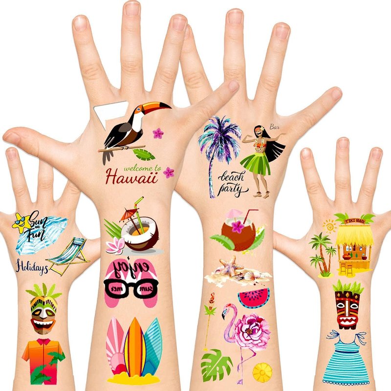 - 【Versatile Use】Suitable for every kid and adult, You can apply these luau tattoos to your body or some smooth objects, for example, glass, tile, stationery, paper, stainless steel, plastic, present boxes, and mobile phone shells.