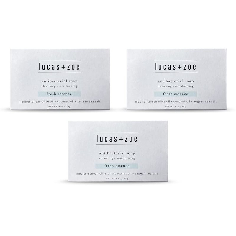 Lucas + Zoe Fresh Essence Antiseptic Bar Soap - 4 Ounce Moisturizing Body Soap Bar Made With Natural Ingredients Like Mediterranean Olive Oil, Coconut Oil, & Aegean Sea Salt - Made In Greece - 3 Pack