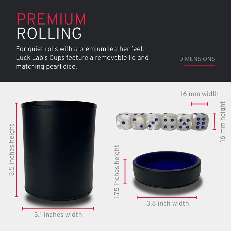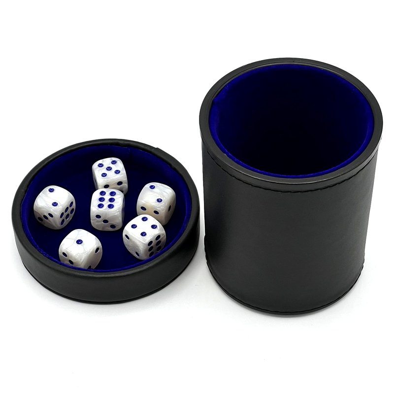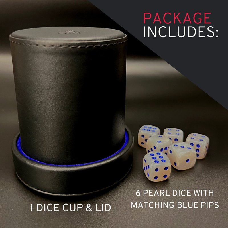 - 6 DICE PER CUP - Includes an extra set of Six Pearl White with Blue pips, 16 mm dice to get you started playing.