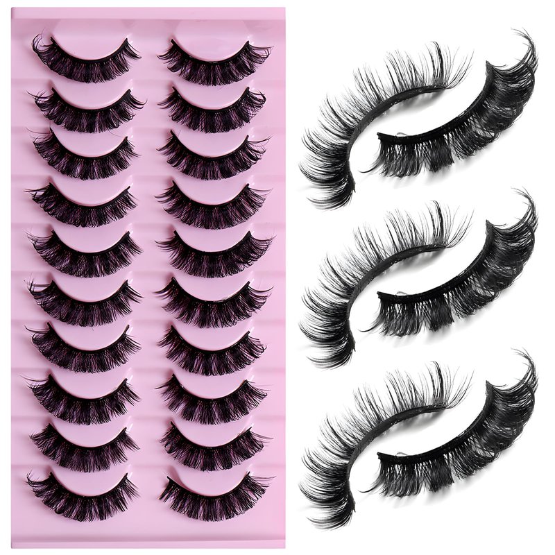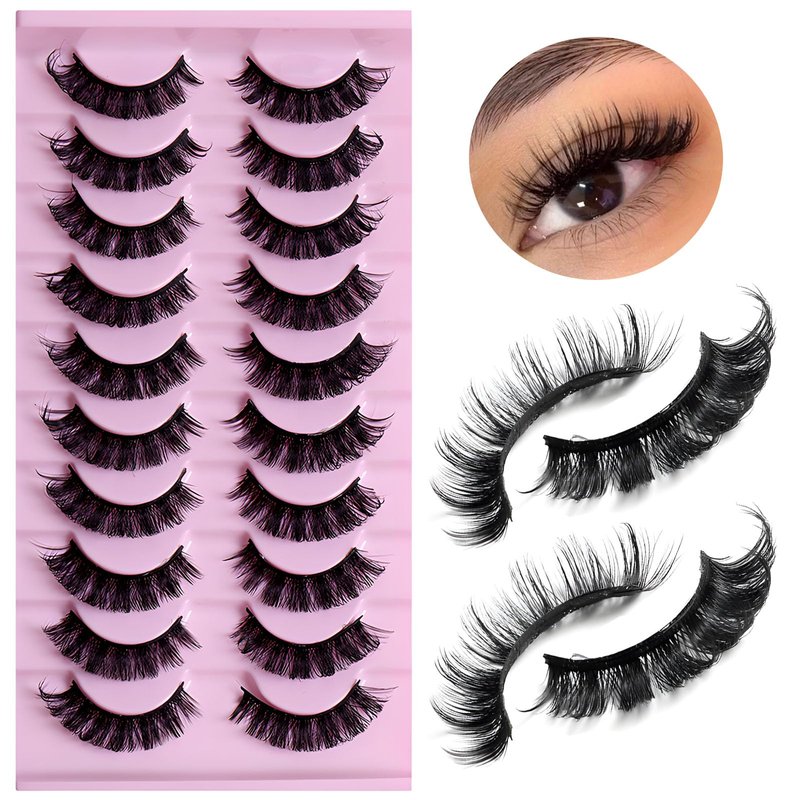 LuckForever 10 Pairs False Eyelashes Russian Strip Eye Lashes Wispy False Lash Fluffy Eyelash Extension Natural Look D Curly Volume Fake Eyelashes Reusable Eyelash Pack for Women Girls
