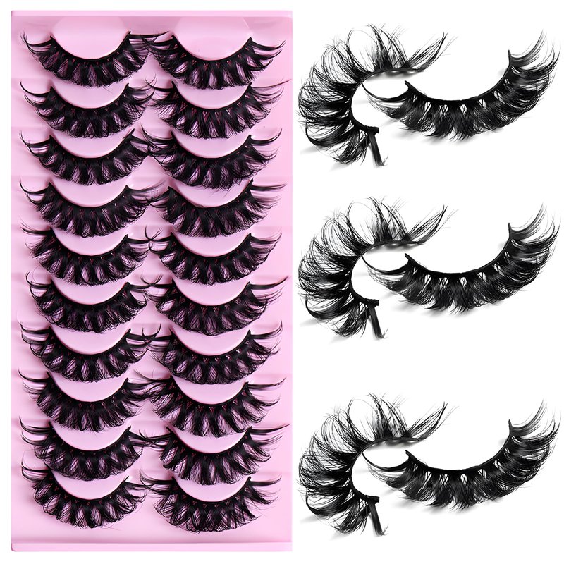 LuckForever 10 Pairs False Eyelashes Russian Strips Eye Lashes Wispy False Lash Fluffy Eyelash Extension Natural Look D Curly Volume Fake Eyelashes Reusable Faux Eye Eyelash for Women Girls