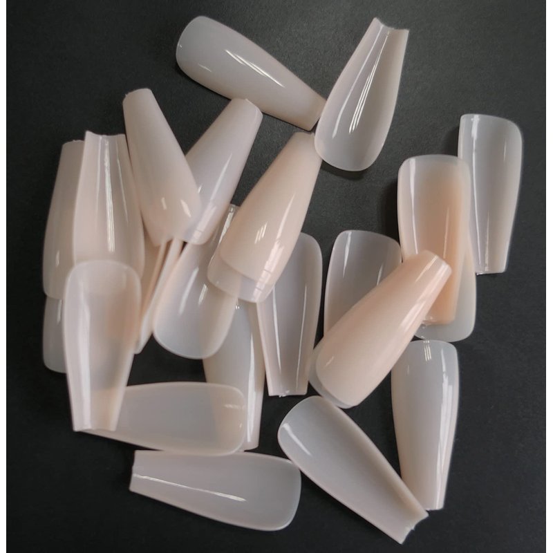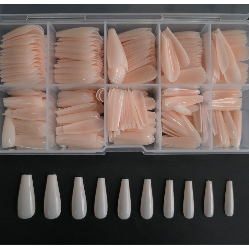 - Designer coffin nails package includes 1 box pre colored jelly nude nude coffin press on nails, 10 different sizes, 50pc eash sizes, total 500pc nail tips, convenient to choose the suitable size that fits your every fingernails.can fit for most fingernails bed.