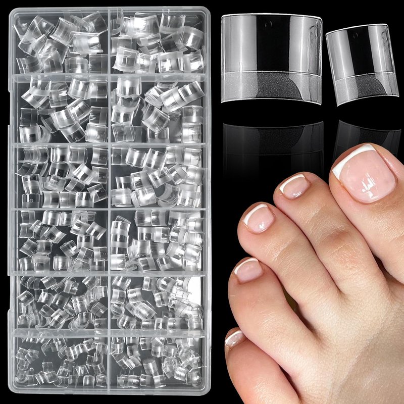 - ❤️Professional Clear French Gel x Toe Tips: Short square french tips gel toenail tips for acrylic toe nails professional come with 600pc short square shape french gel x toenail tips with durable reusable case package.Clear half cover gel x toe nails tips are perfect for professional salon nail techs and home nail art lover/beginner acrylic toenails extension, acrylic toenails, acrylic powder toe nails, dip powder toenail builder and press on toe nails making.