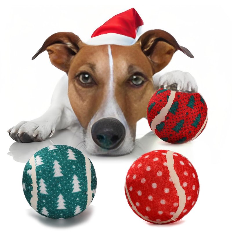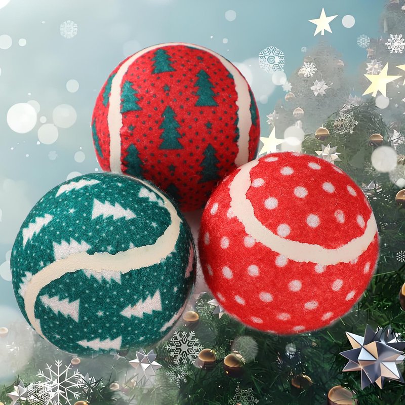 LUCKITTY 3 Packs Christmas Dog Tennis Balls Interactive Toy Puppy for Small Medium Dogs Training Playing- Christmas Tree and Snowflake Patterns 2.5 Inch