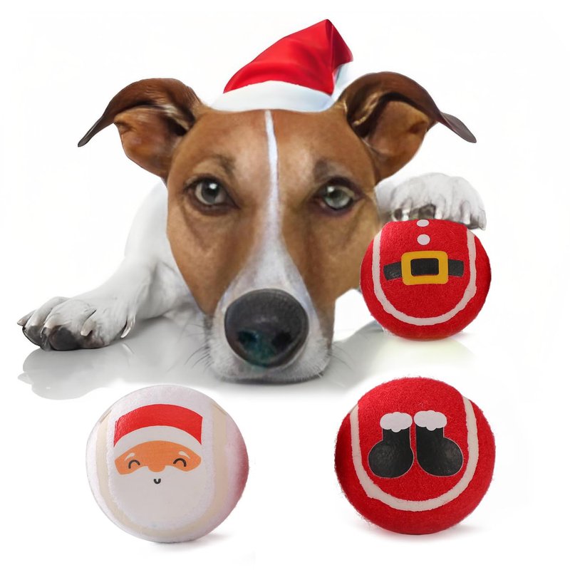 LUCKITTY 3 Packs Christmas Dog Tennis Balls Interactive Toy Puppy for Small Medium Dogs Training Playing- Santa Claus Patterns 2.5 Inch