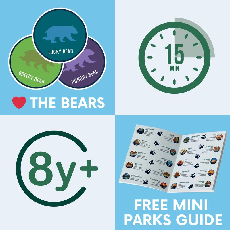- Collect National Parks: Lucky Bears combines strategy and adventure, allowing players to gather tokens from U.S. national parks in a fun, fast-paced game. Great for fans of national parks board games and family board games for kids and adults.