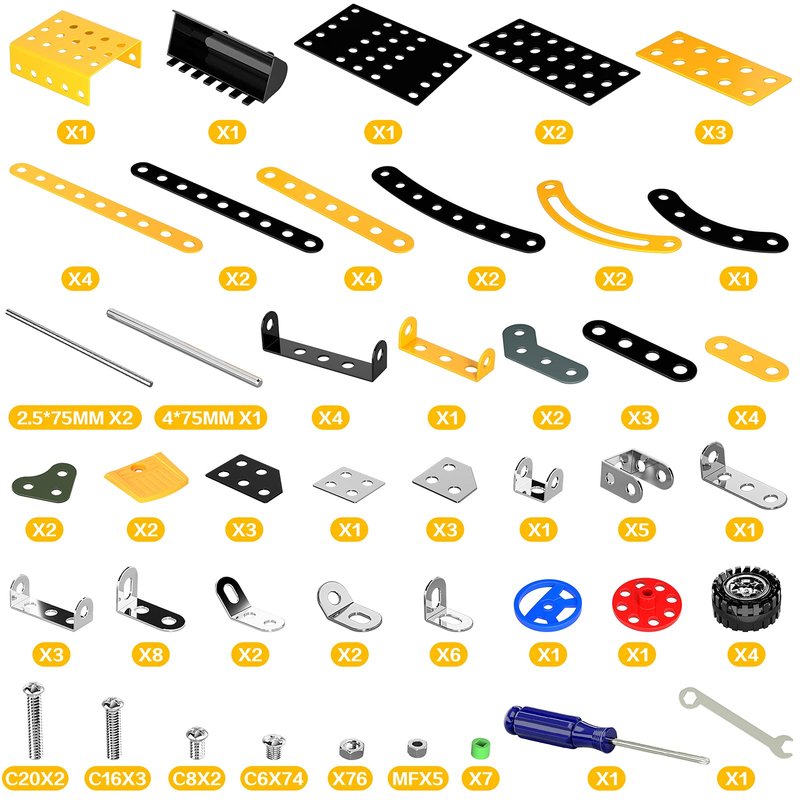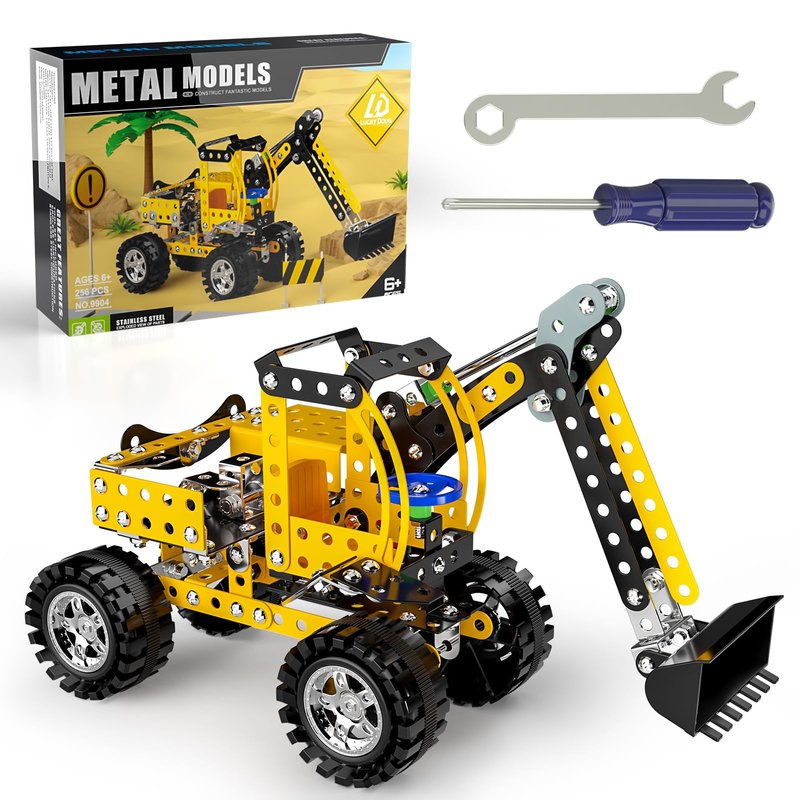 - STEM Building Toys For Kids Ages 8-12 - Our construction building toy is designed for 8+ years old kids, includes 256 parts, such as nuts, bolts, screwdrivers, and wrenches, made of durable metal. After the build is completed, The swing arm can swing freely, and the bulldozer can slide for a long distance with a little push. This stem building toy incorporates boring engineering knowledge and concepts into funny building games, aiming to improve children's STEM skills.