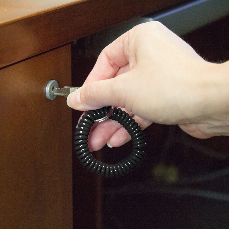 Lucky Line 2” Diameter Spiral Wrist Coil with Steel Key Ring, Flexible Wrist Band Key Chain Bracelet, Stretches to 12”, unisex-adult, Black, 1 PK (410201)